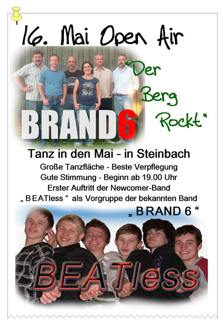 Am 16. Mai war in Steinbach einer der Höhepunkte der Feierlichkeiten zum 50-Jährigen Gründungsfest. Mit zwei Band's wurde ein open air auf die Beine gestellt.