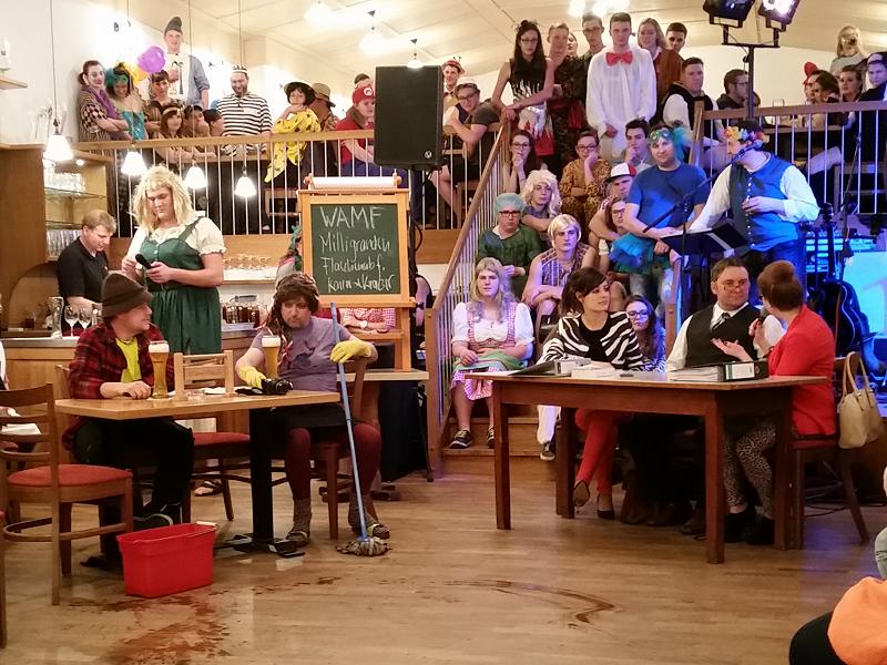 Die Einlage der Wambecker wurde wie immer mit Spannung erwartet. Dieses Jahr befassten sie sich mit der Asyl-Problematik. Ob Nigerianer oder Geislbecker – für alle wurde eine Lösung gefunden. Nach der Einlage verlagerte sich ein großer Teil in die Bar. Dort wurde unter dem Überbegriff „getränkebasierte Vernetzung“ ordentlich weitergefeiert. Auch dieses Jahr dauerte die Party etwas länger, was dafür spricht, dass es ein schöner Abend war.