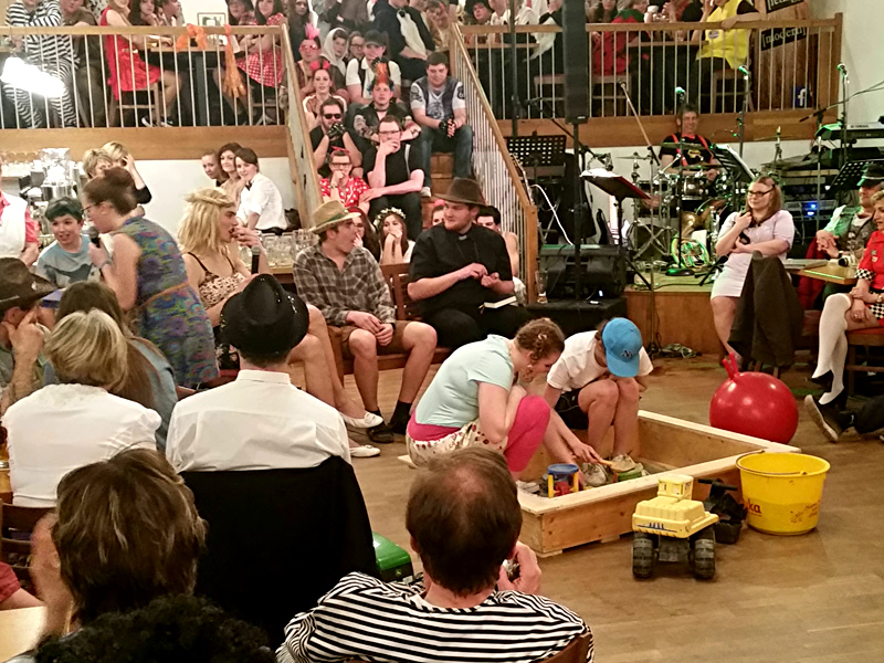 Auffällig war die Inszenierung der Fernsehserie „Bauer sucht Frau“. Der Bauer (Stefan) hatte seine gesamte „Kuh-Herde“ mit zum Ball gebracht. Unsere Jugend war somit sehr stark am Kappenabend vertreten. Natürlich gab es von den Wambecker‘n wieder die heiß ersehnte Einlage. Die Szenen am Kinderspielplatz spiegelten die eine oder andere Begebenheit aus Wambach und Umgebung wieder. Viel Wortwitz und eine wirklich gute Darstellung der Ereignisse sorgten für gute Stimmung und viel Anstrengung der Lachmuskeln. Es wurde viel getanzt und gelacht – eine sehr gelungene Veranstaltung die überwiegend junges Publikum angezogen hat. Die Besucherzahl kann sich auch sehen lassen. So viele Besucher haben den Kappenabend besucht wie schon lange nicht mehr.