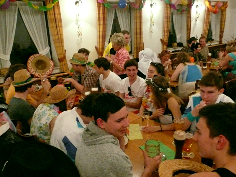 Faschingssamstag und in Wambach ist Kappenabend. Seit vielen Jahren veranstalten die Eichenlaubschützen an diesem festen Termin ihren Faschingsball, der auch dieses Jahr wieder sehr gut besucht war. Die Grenzlandschützen sind dieses Jahr als Touristen auch wieder zahlreich dabei gewesen. Mit knapp 30 Leuten mussten die Stoabecker noch einen Tisch dazustellen, damit alle einen Platz bekamen.