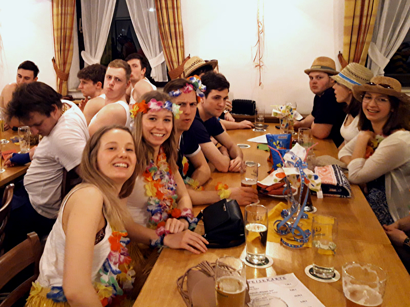 Auf ging’s zum Fasching in Wambach. Wie immer veranstalteten die Eichenlaubschützen aus Wambach am Faschingssamstag ihren Kappenabend. Natürlich waren die Stoabecker Schütz’n wieder vertreten. Gut 20 Leute aus Steinbach haben den Kappenabend besucht. Das diesjährige Motto war „on the beach“. So fanden sich viele sommerlich bekleidete Schütz/innen in Wambach wieder.