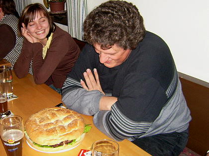 Wie so oft wurde aus einer Diskussion heraus eine Idee geboren. So unterhielt man sich über XXL-Fast-Food-Lokale und die Mengen, die dort verdrückt werden. Da der Jugendtrainer für seine etwas größeren Portionen bereits bekannt war, wurde hier ein Experiment gestartet.