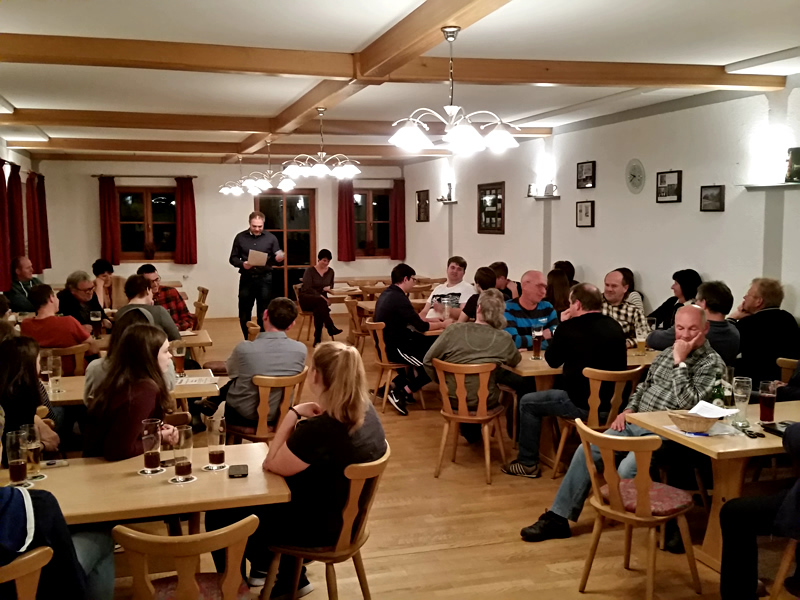 Nachdem Schützenmeister Freudenreich die Versammlung geschlossen hat blieben die Grenzlandschützen noch lange in geselliger Runde sitzen um zu ratschen, spielen oder feiern.
